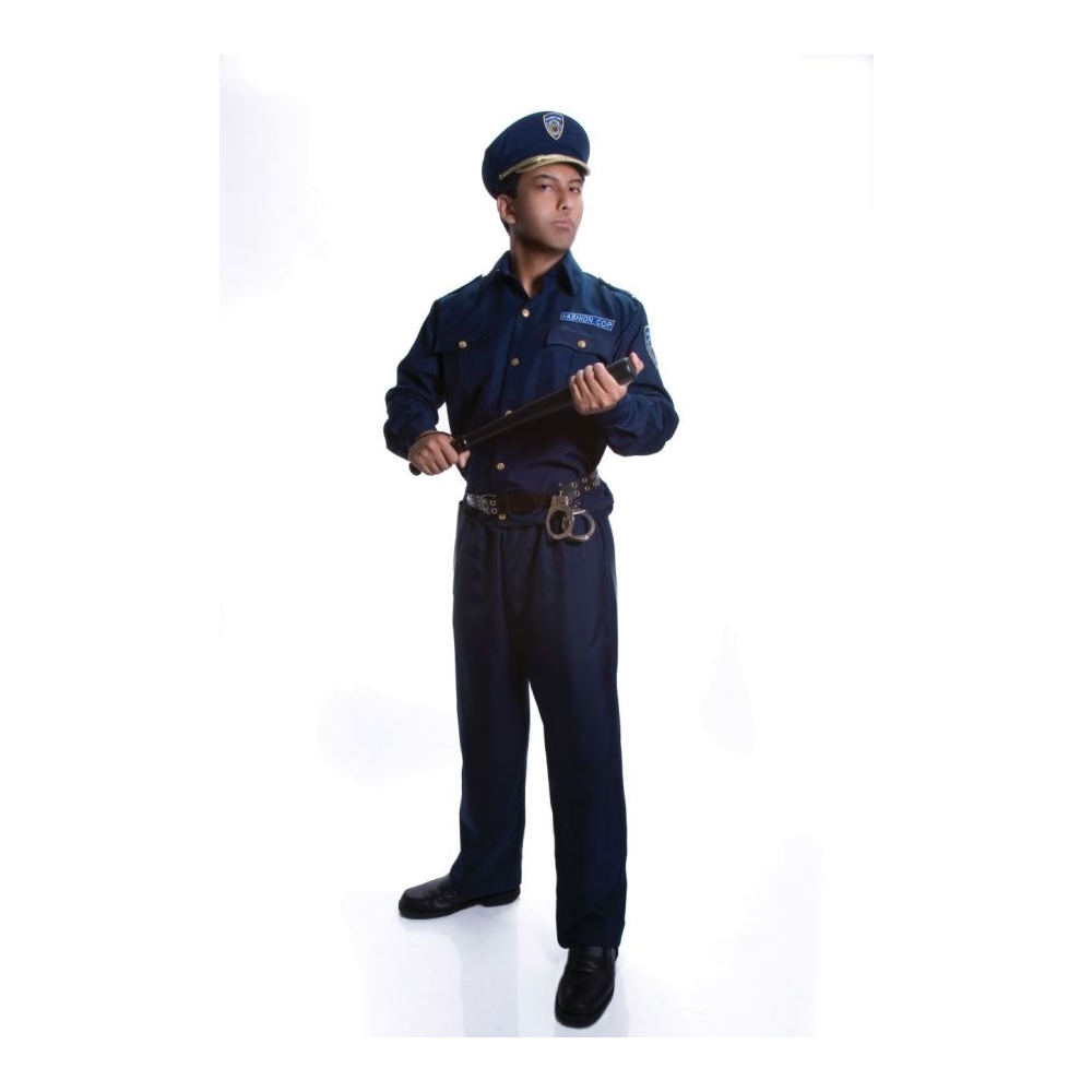 Adult Police Costume Complete With Shirt, Pants, Hat, Belt, Hand Cuffs, And Gun Holster. Even Has Real Buttons, Pleated Button Shirt Pockets And Embroidered Patches. Machine Washable Polyester. Medium Adult Fits Sizes 38-40.
