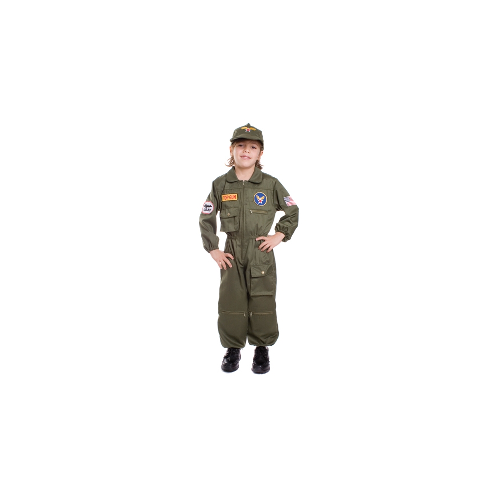 Air Force Costume Jumpsuit With Patches And American Flag Insignia Loaded With Lots Of Snap And Zipper Pockets And Traditional Style Air Force Cap. Child Sm 4-6.