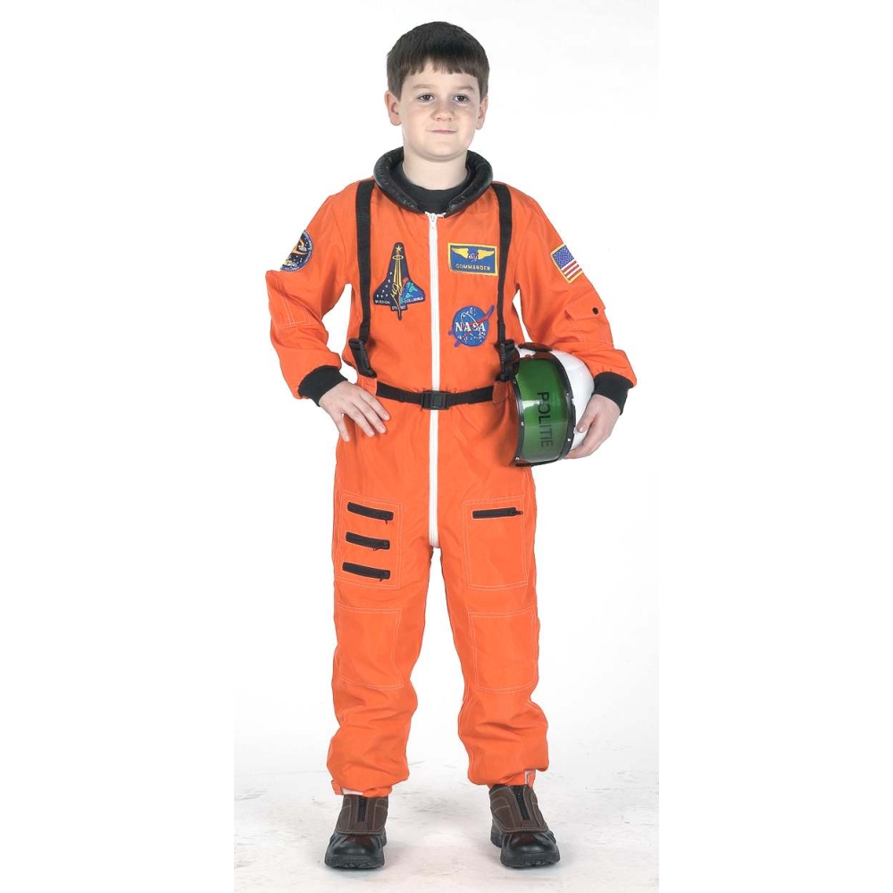 Top Quality, Orange Astronaut Suit With Nasa Logos And Patches. Includes A Black Hat With Nasa Insignia On Front And Special Zipper Compartments. Functional Pockets And Velcro Leg Straps For A Comfortable Adjustable Fit. Material Content: 100% Polyester. Fits Children Sizes 4-6. Care Instructions: Turn Garment Inside Out, Machine Wash Cold. Use Non Chlorine Bleach Only If Necessary. Tumble Dry Low. Warm Iron.