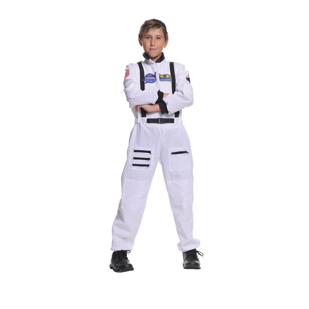 Jumpsuit With Zippers And Embroidered American Flag, Space Shuttle, Nasa, And Nasa Commnander Patches. Elastic At Back Waist And Ankles Allows For An Authentic Fit, With Comfortable Knit Wrist Bands. 100% Polyester. Should Fit A Size 12-14. Runs Large.