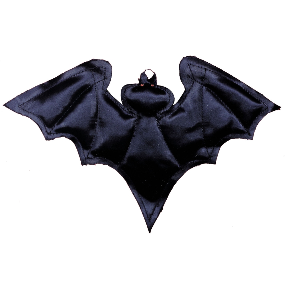 Black Satin Bat Shaped Tie With Bead Eyes And Topstitch Detailing. Elastic Neckband.