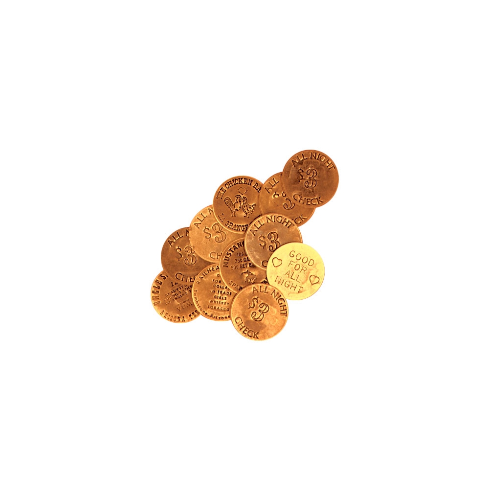 Solid Brass Tokens. Six Assorted Tokens Per Bag.