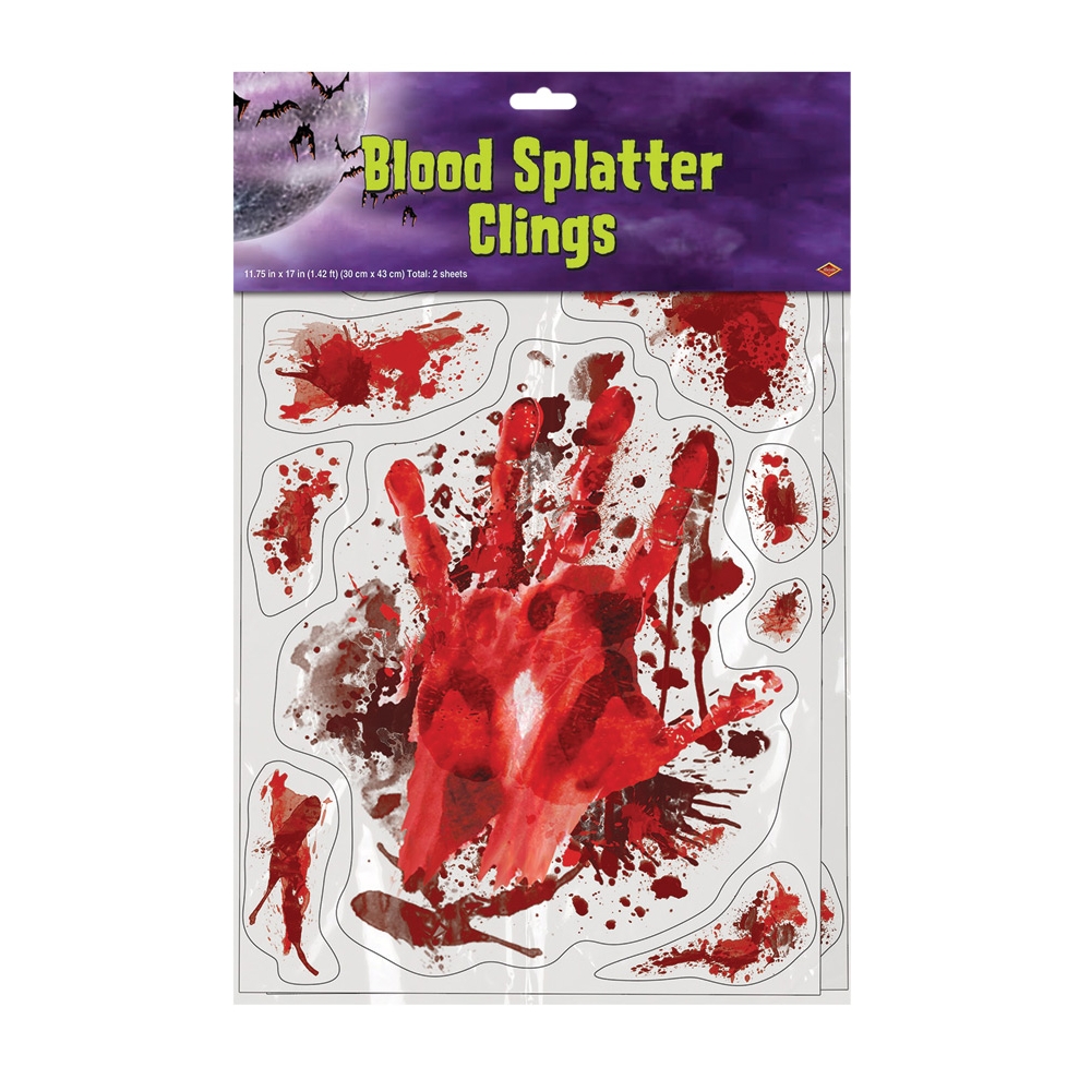 A Great Halloween Decoration That Will Freak Your Guests Out! Place This Cling On Your Car Window Or Home Window And The Disembodied Bloody Handprint Surrounded By Blood Spatter Will Make A Huge Impact! Vinyl. 18 Different Clings Per Item. 12In X 17In Sheet.
