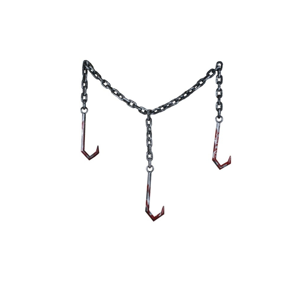 Looks Like Something Straight Out Of A Horror Movie. 3 Bloody Meat Hooks Connected To Old Look Plastic Chain. Great Decoration Item For Any Haunted House Or Home Haunter.