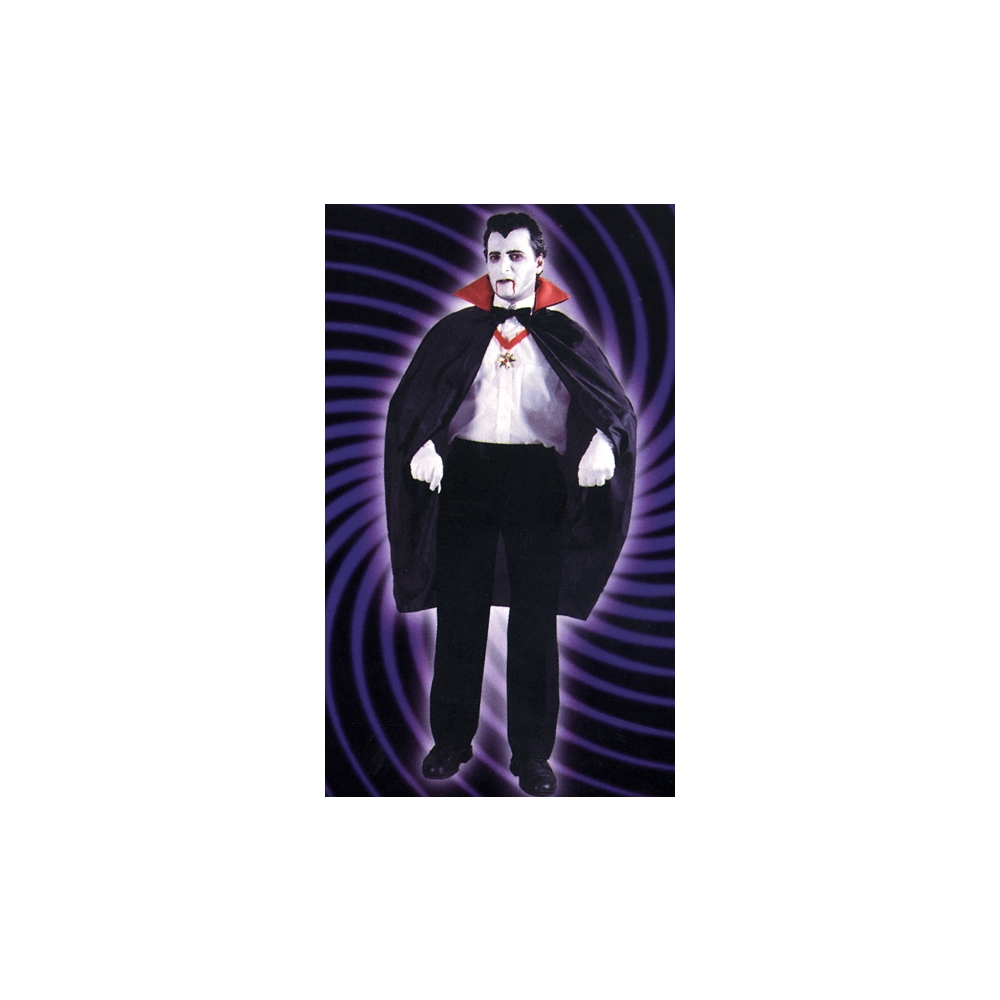 Unlined Nylon Cape With Stand Up Collar Is 45 Inches Long With Tie Closure. Great Addition To Your Vampire Or Vampiress Costume! Made Of Flame Resistant Fabric. Costume, Pitchfork And Medal Not Included.