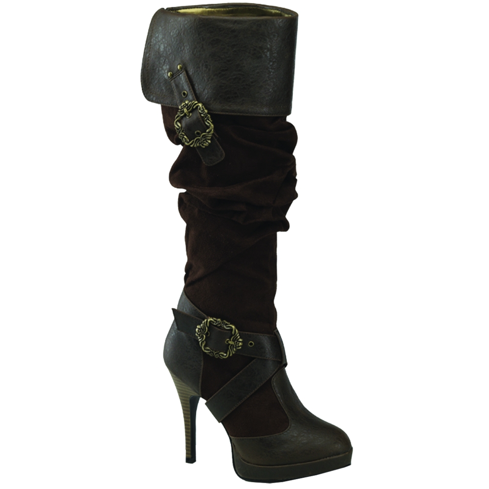 Take Your Sexy Pirate Costume To The Next Level With These Magnificent Knee High Platform Boots. They Feature Brown Slouched Faux-Suede And A Thick Fold Over Polyurethane Cuff That Looks Like Distressed Leather. These Stunning Female Pirate Boots Are Adorned With Intricate Octopus Buckles, Faux-Leather Straps, And A Wood-Like 4 - Heel. And The Best Part-They Are Easy To Get On And Off With The Full-Length Inner Leg Zipper. Get Ready To Turn Heads! Brown. Women'S Size 7.