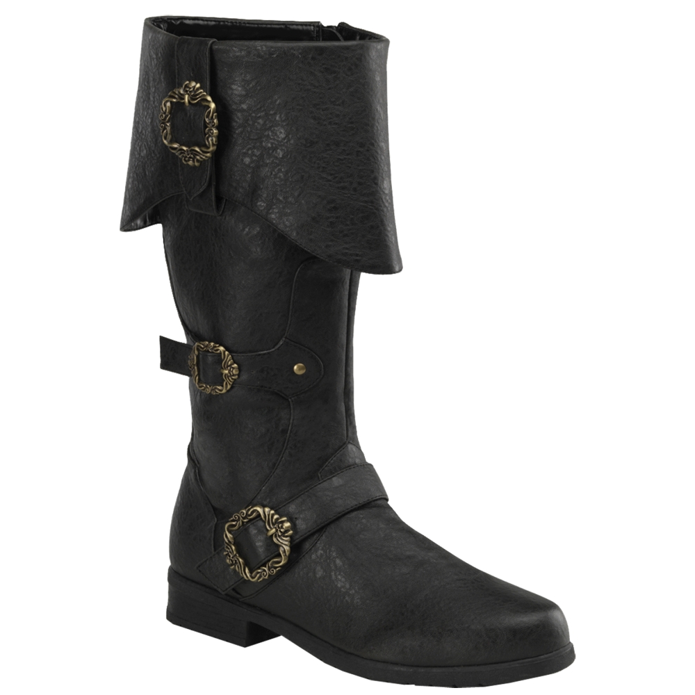 Just The Finishing Touch You Need For Your Next Adventurous Pirate Costume! Rugged Men'S Distressed Leather-Look Pirate Boots Are Accented With Faux-Leather Straps And Cuffs And Trimmed With Octopus-Design Buckles! Features A Full Inner Side Zipper For Easy On/Off. Boots Are Water Resistant And Are Easily Cleaned And Maintained. One-Inch Flat Heel. Black Polyurethane. Men'S Extra Large Fits Size 14.