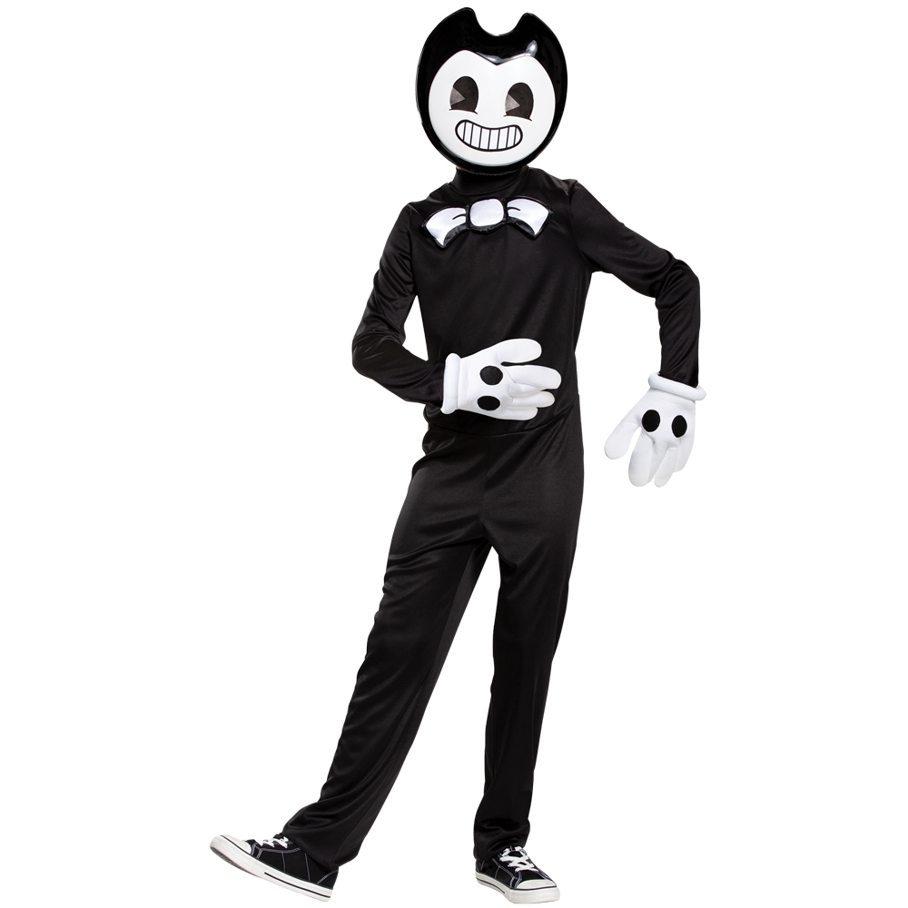 Be the devilish demon from the thrilling video game, Bendy and the Ink Machine. YouĂre sure to cause a scare this Halloween when you transform into your favorite video game character. An easy way to transform into your favorite video game character. Includes black jumpsuit, character half mask and pair of gloves.