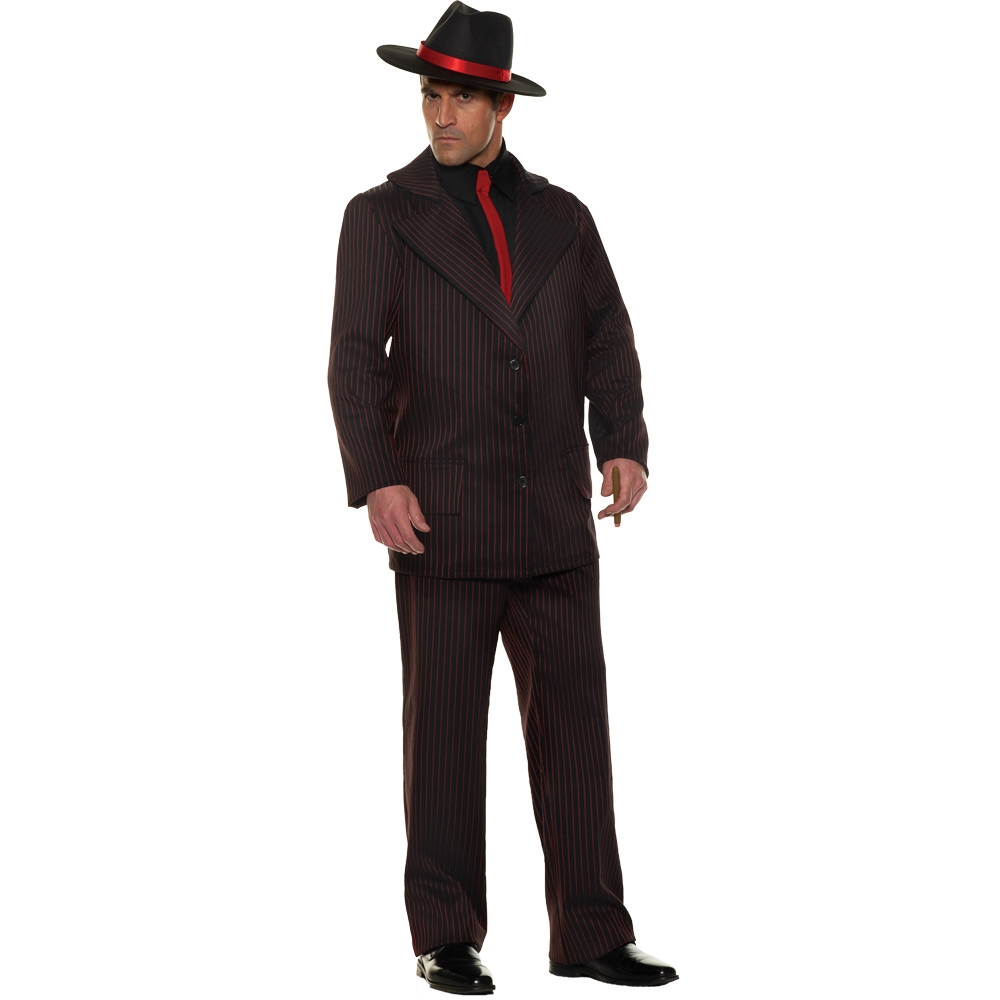 Go back to the prohibition era dressed in this 1920ís inspired gangster suit. All the flappers will be drawn to you in this snazzy pinstriped suit. When you step into this 20ís gangster outfit you can transform into a Mafia Boss, Bootlegger or Mobster. This gangster suit is perfect for your Roaring Twenties or Gatsby Themed Party! The Adult Menís Malone Costume features a red and black pinstripe jacket with black shirt front and attached red skinny tie. Also includes matching pinstripe pants. Gangster hat, cigar and shoes not included.
