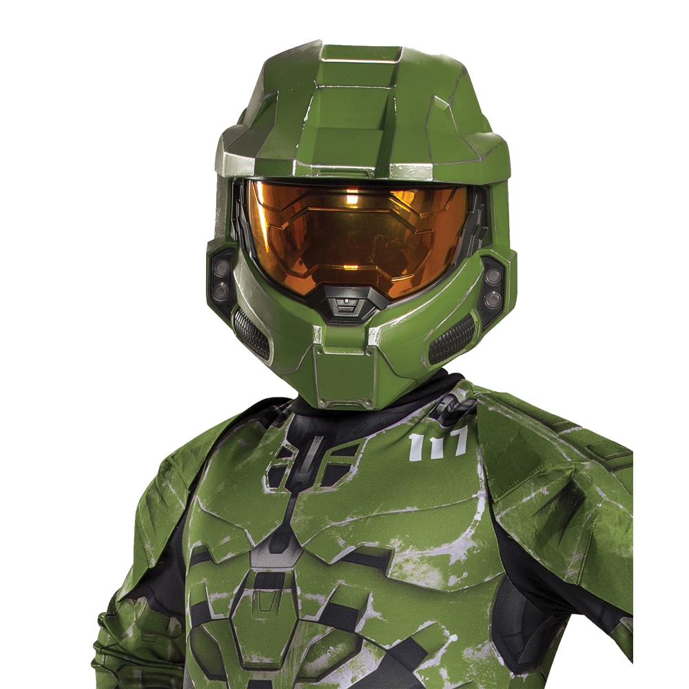 Save humanity when you become the greatest Spartan soldier of all time. Now you can dress up as your favorite video game character from Halo Infinite with this Master Chief Infinite Mask. The Halo Master Chief Infinite Child Mask includes a green and gold character half mask. One size fits most children.