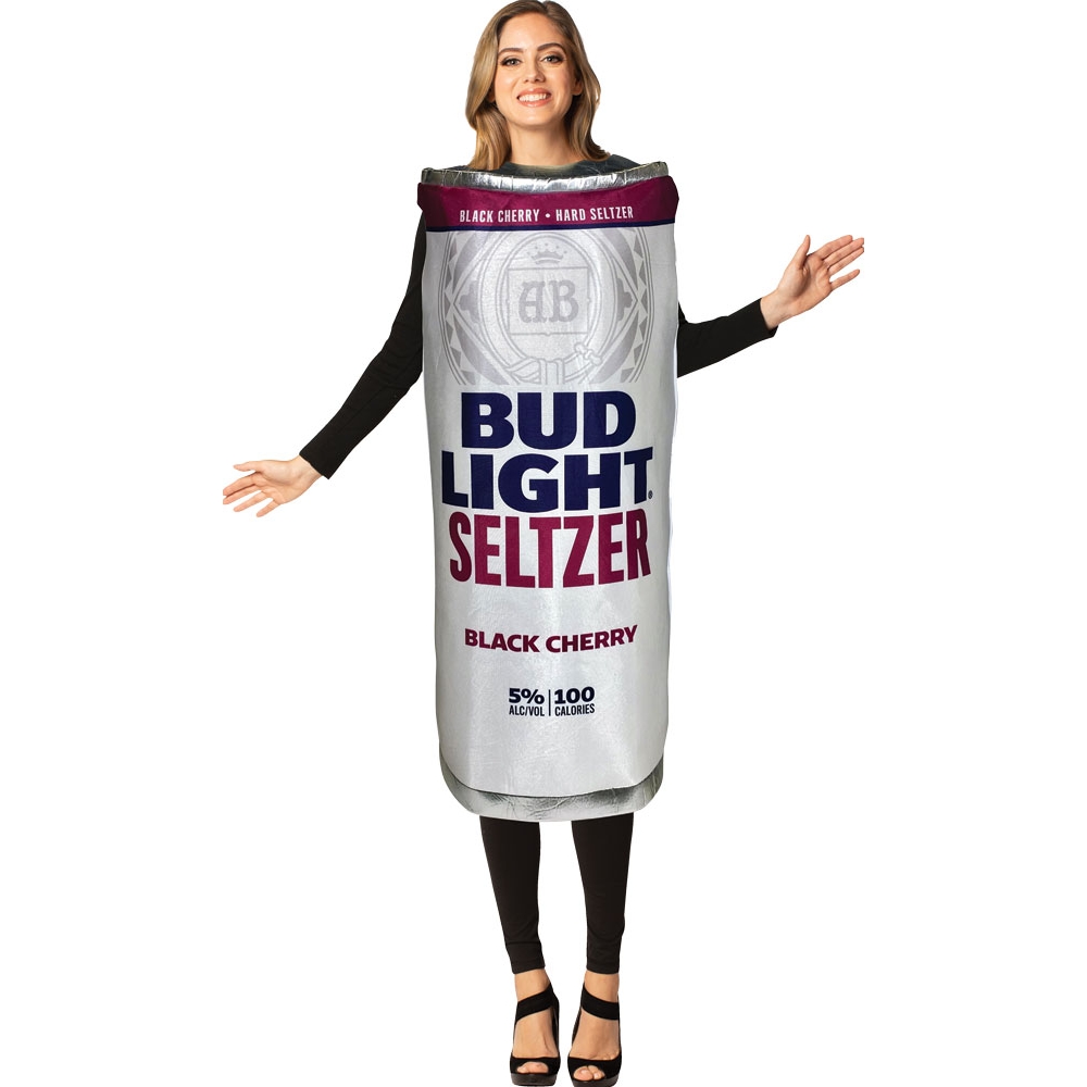 The perfect Halloween costume for the Bud Light Seltzer lover. Wear the Bud Light Seltzer Black Cherry costume, drink, party all night, Repeat! The costume includes a slim can style pullover tunic. Printed on the front only with likeness of actual product. One size fits most adults.