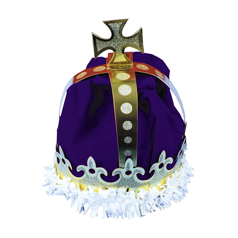 Paper Crown With Gold Foil Band Trimmed With Glitter And White Fringed Tissue. Royal Blue Or Regal Red Flocking On Crown Give It A More Expensive Look.