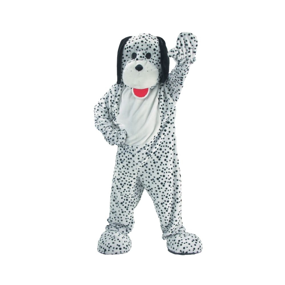 Jumpsuit With Attached Mitts With Black Spotted Head Has Floppy Ears And Oversized Feet. One Size Fits Most. Height Up To 75 Inches, Waist Size Up To 60 Inches. Machine Wash Gentle. Flame Retardant. Polyester.