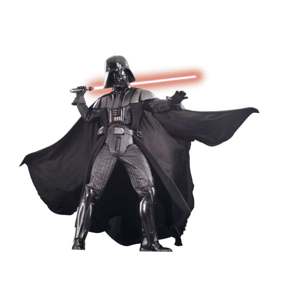 Become The Most Feared Bad Guy In The Galaxy! Super Deluxe Costume Has A Jumpsuit With Quilted Faux Leather Pants And Sleeves. Ominous And Flaring Cape From Lucas Studios Original Patterns. Heavy Duty Injection Molded Armor Pieces Cast From Original Lucas Studios Molds Include Collar, Shoulder, Guards, Boot Tops, Chest Piece And Belt. Includes Ru4199 Oversized Supreme Edition Mask And Helmet, And Gloves With Gauntlets. Helmet Includes Sound Module That Plays Realistic Darth Vader Breathing Sound. Light Saber Not Included. Adult Standard Size 36-44. Chest Plate And Belt Light Up And Requires 2 Aa Batteries Each.