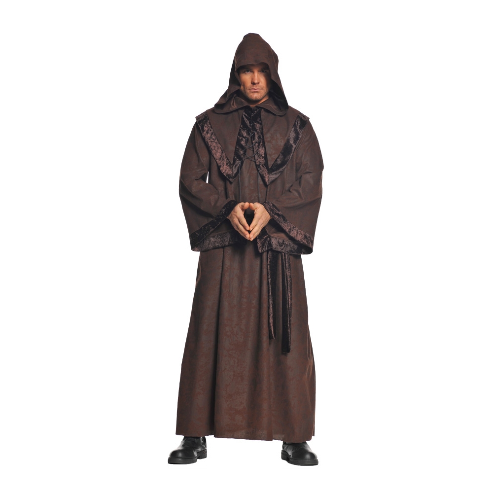 A New Stylish Robe Perfect For Monks And Other Characters. Brown Lace-Front Robe With Attached Hood And Matching Belt. Adult One Size Fits Sizes 42-46.