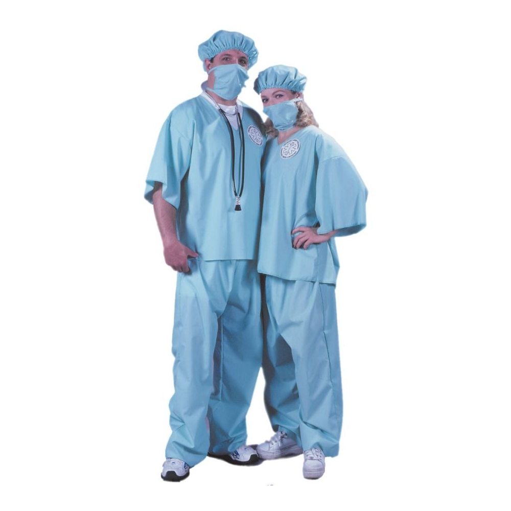Unisex Costume Including Scrub Pants And Top, Cap, Mask, Patch, And Stethoscope. One Size Fits Up To 200 Lbs. Cotton Blend.