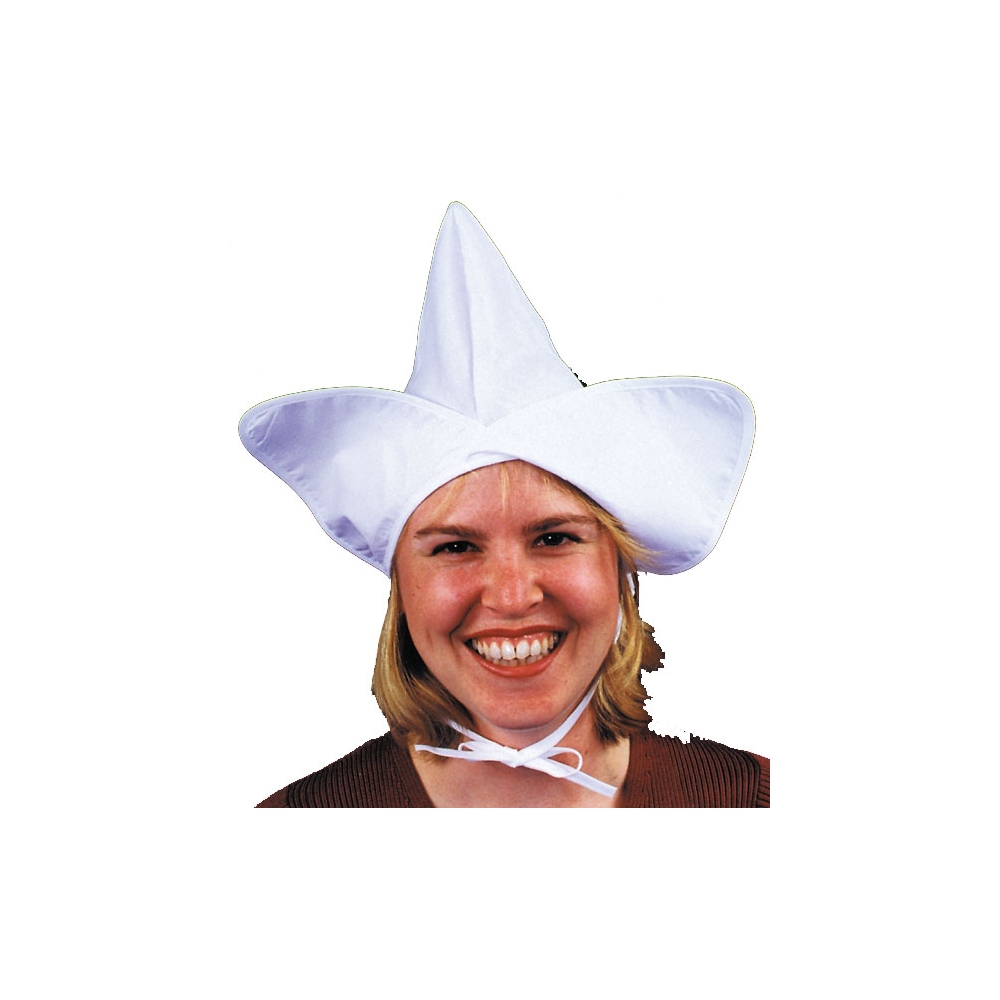 White Pointed-Tip Cloth Hat With Flip Back Brim. One Size. Cotton With Tie Chin Strap.