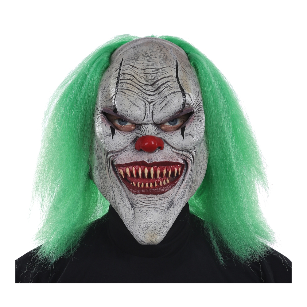 100% Latex Clown Mask With Green Polyethylene Fiber Hair. One Size Fits Most Adults.