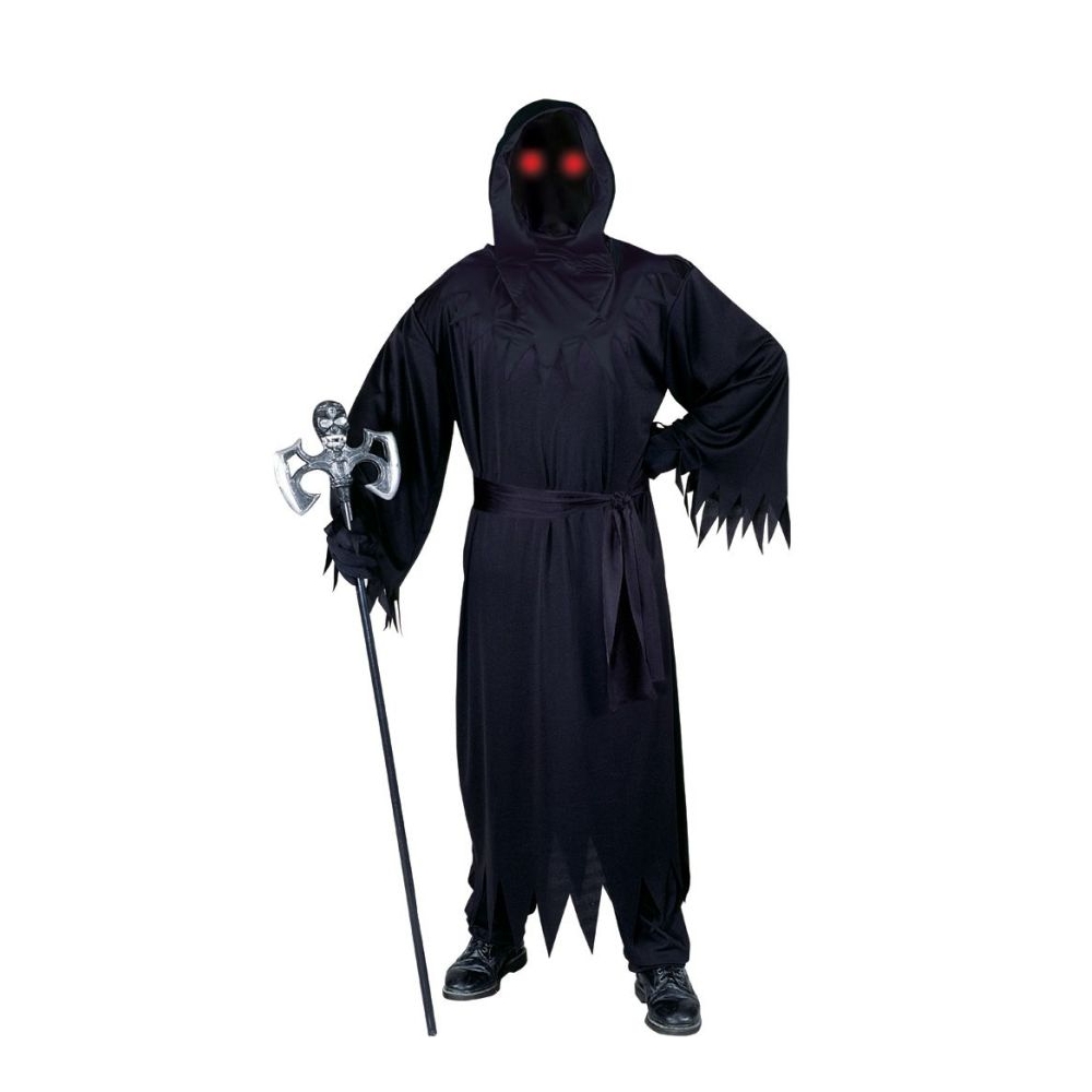 Robe, Belt, Hood, Gloves And Glasses With Battery Operated Fade In-Fade Out Mechanism. Skull Cane Is Not Included. One Size Fits Most Adults Sizes 33-45. Requires 3 Aa Batteries, Not Included.
