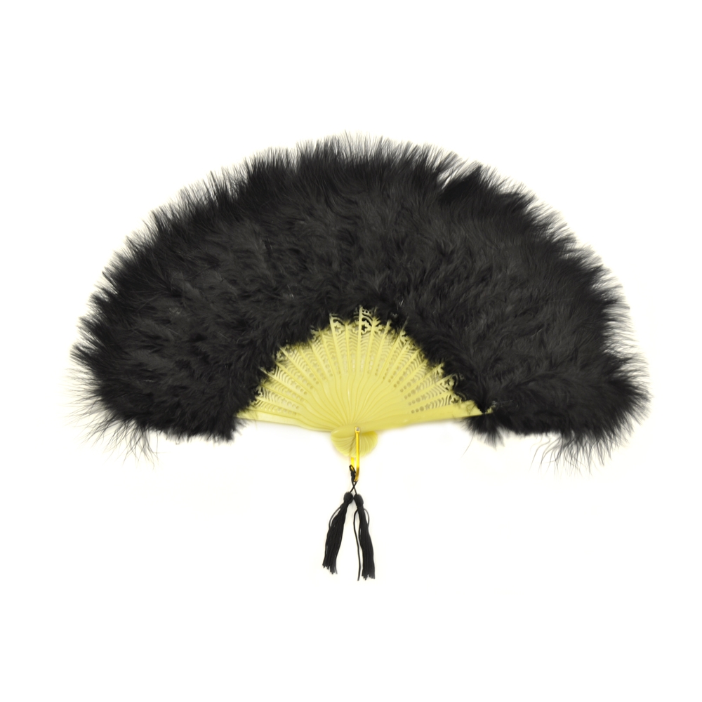 Twelve Inch Wide Fan With Marabou Plumes On A Plastic Base. Black.