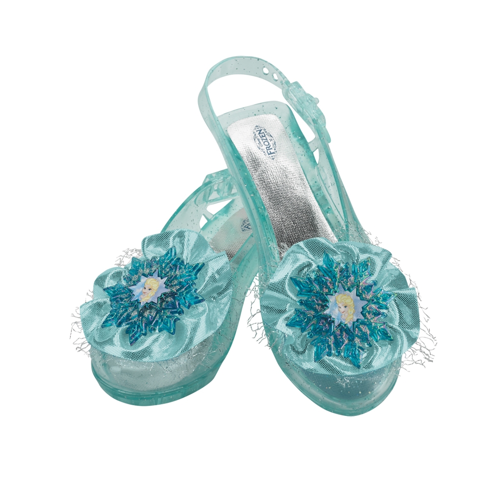 Just What You Need To Finish Off Your Elsa Snow Queen Costume! Adjustable Blue Jelly Shoes Have Silver Sparkles And A Sparkly Blue And Silver Net Accent At The Toe Topped By A Character Cameo. The Silver Insole Has An Official Frozen Logo Printed At The Heel. You Will Feel Like A Princess!