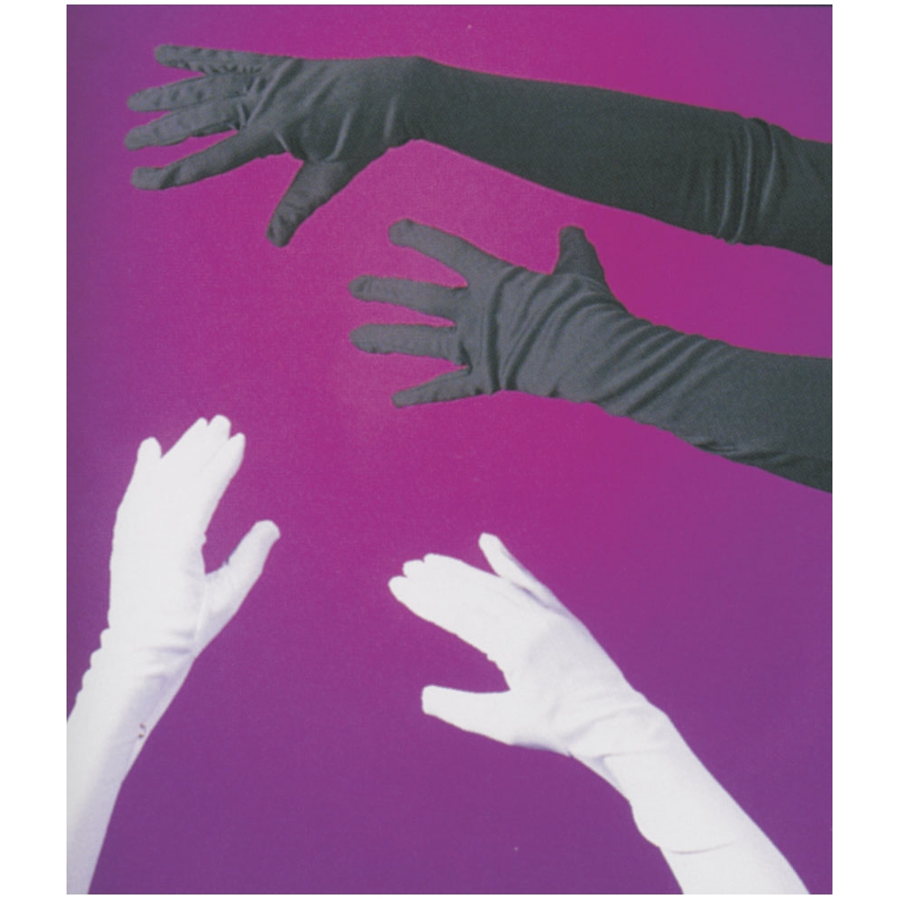 Stylish Stretch Opera Gloves Measuring 15 Inches Long. 100 Percent Polyester. Child Size.