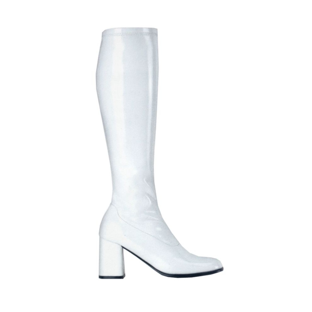 The 60'S Are Alive And Well! White Knee High Patent Leather Look, Stretch Boots. Groovy Man! Adult Size 8.