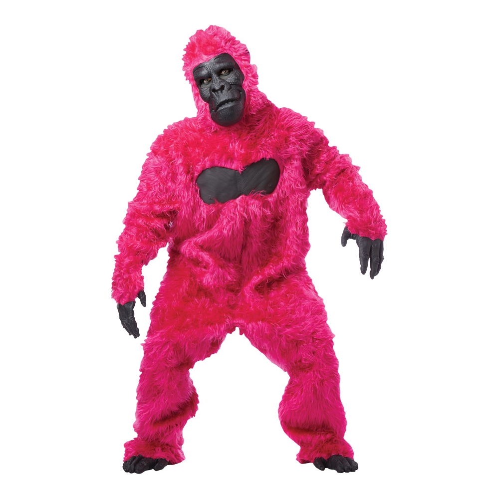 A Fun Pink Gorilla Costume You Can Use For Many Different Events! Fur Bodysuit With Attached Chest Piece, Mask With Fur, Hands With Fur, And Gorilla Feet With Fur. One Size Fits Most.