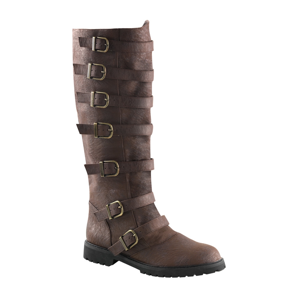 1 1-2-Inch Heel, Men'S Pull-On, Multi-Buckled Strap, Knee High Boot.