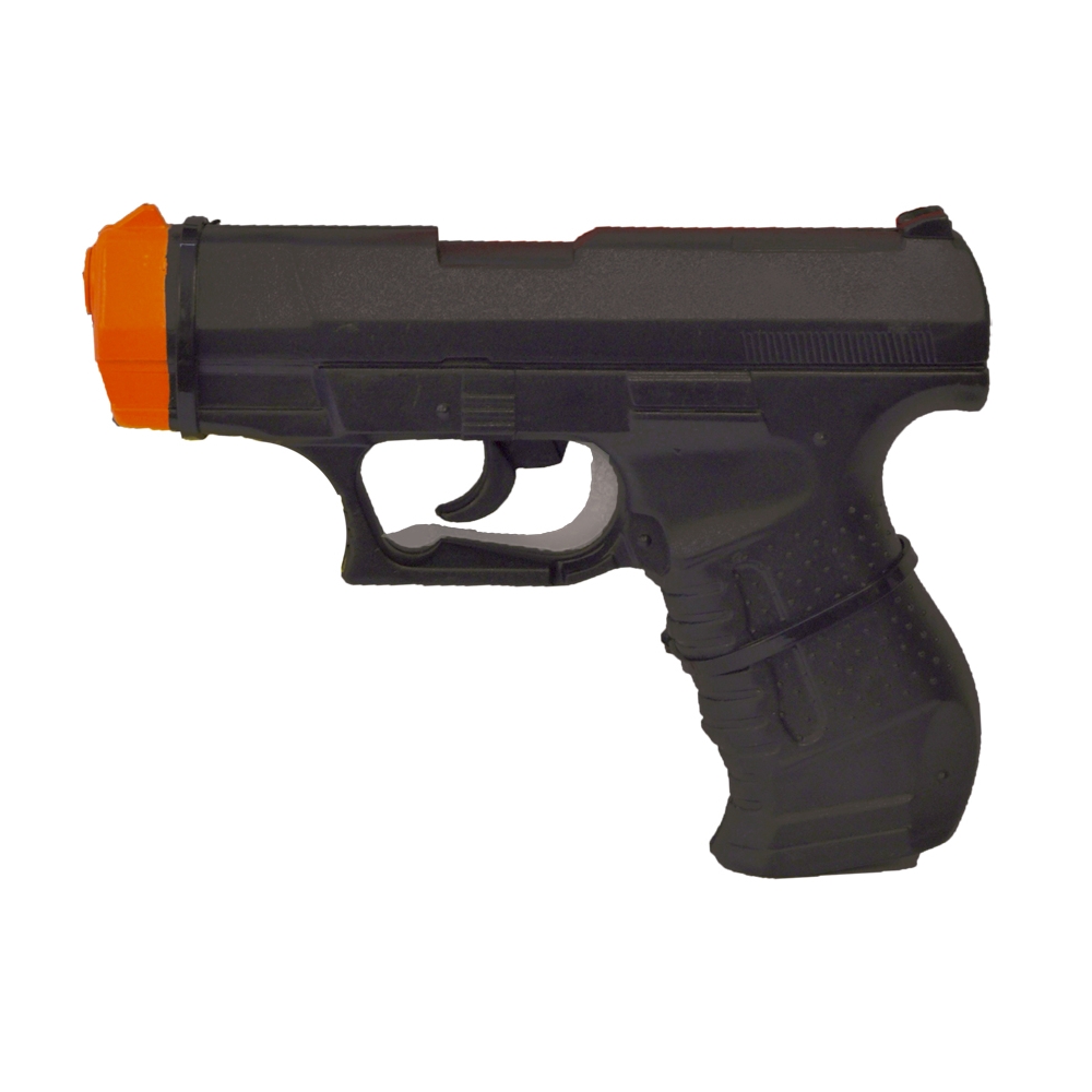 Heavy, Hard Plastic Gun. Pull The Trigger For A Loud Click. Measures 7 Inches Long X 5 Inches High.