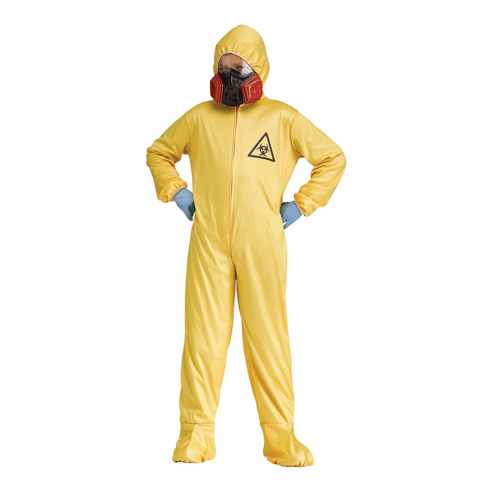 Your Child Will Create Quite A Disturbance With This Realistic-Looking Yellow Hazmat Suit. Yellow Jumpsuit With Black Insignia Over One Side Of The Chest. Hooded Coverall And Mask. Fits Child Size 12-14.