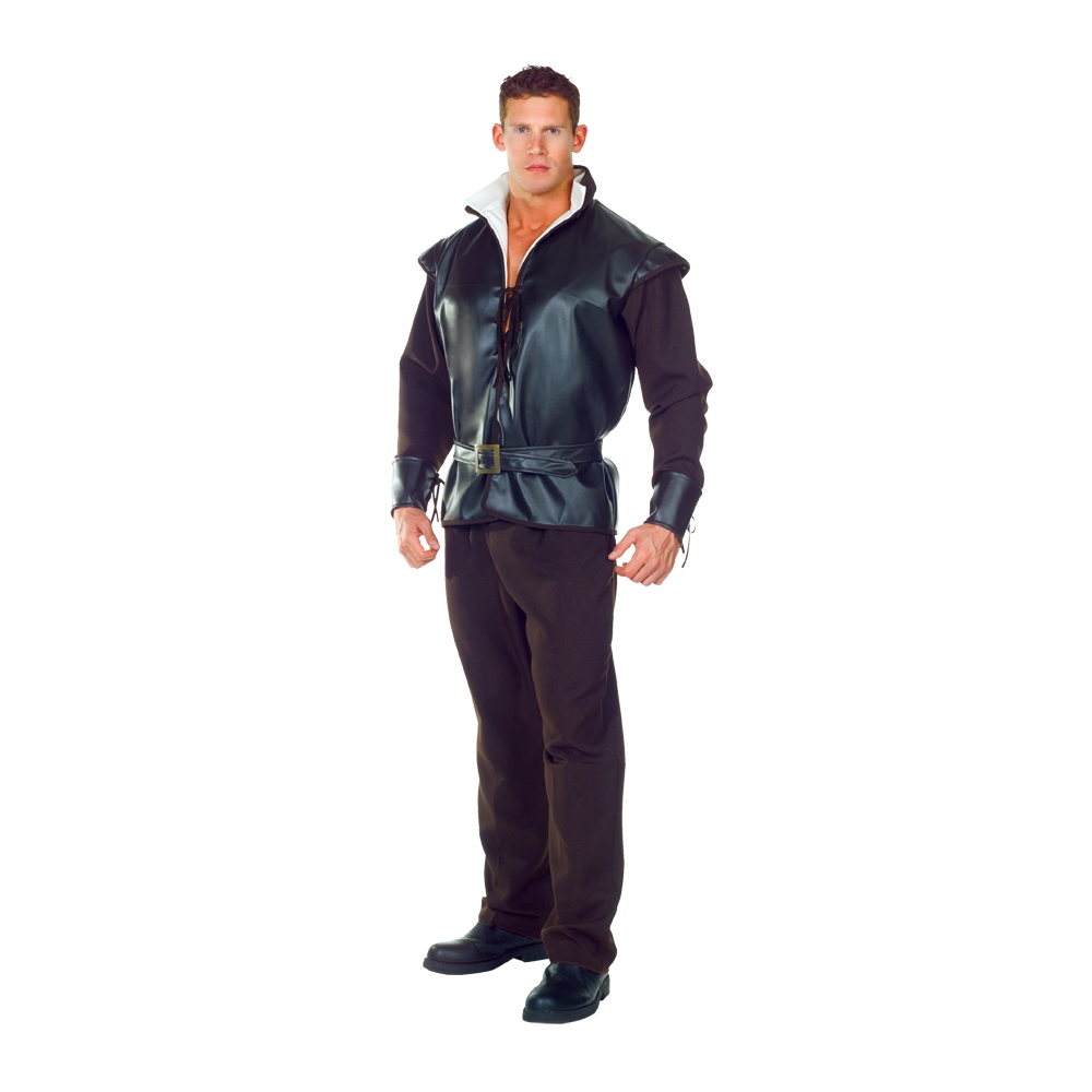 Vinyl Vest With Faux Shirt Collar And Sleeves, Pants And Belt.
