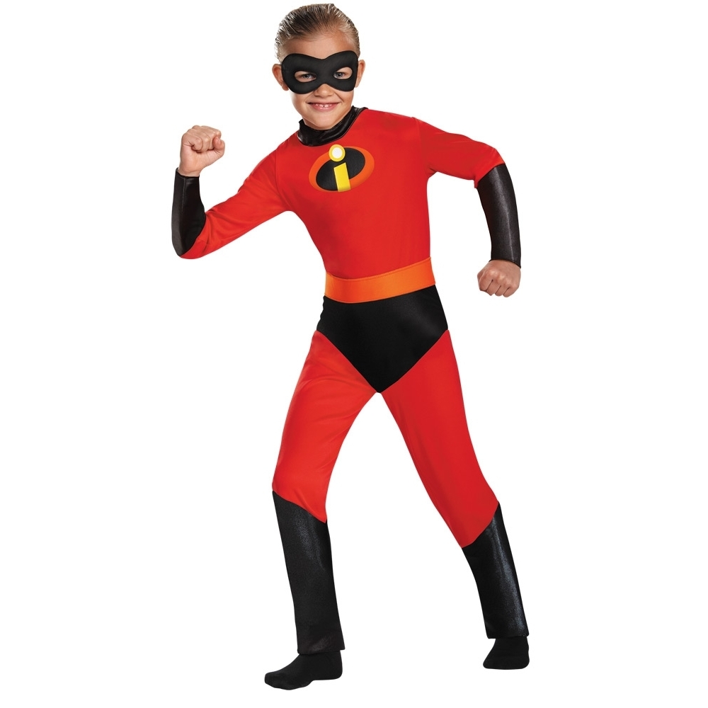 Here comes the super quick Dash! From the latest Incredibles movie blockbuster. Comes with a jumpsuit with an attached belt and character eye mask. Add your own shoes. 100% polyester. care instructions: hand wash cold, do not bleach. Dry flat, do not iron. Fits toddler sizes 3t-4t.