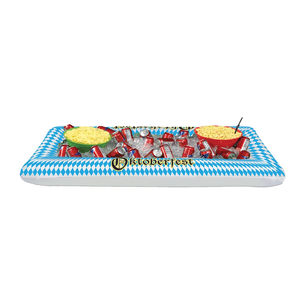 Keep Your Food And Beverages Nice And Cold With Our Inflatable Oktoberfest Buffet Cooler! This Festive Blue And White Diamond Print, With Printed "Oktoberfest" Logo Stretches 28In Wide X 53 Inches Long. Pvc. Must Be Inflated. Just The Decoration You Need For Oktoberfest, Other Fun Productions And Festivities, Or Just Because!