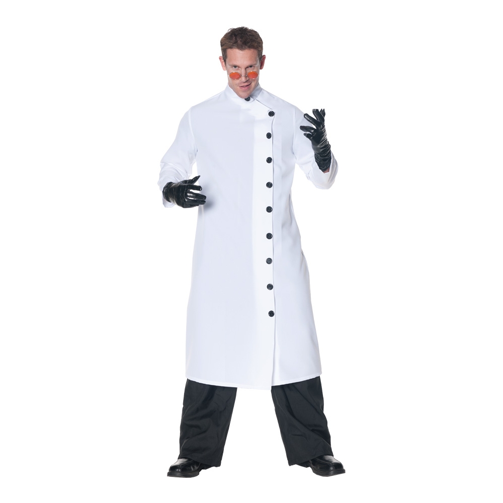 Perfect For Any Doctor Or Mad Scientist. White Medical-Look Jacket With Black Buttons Down The Side. Gloves And Glasses Not Included. Fits Adult Size Xxl. Waist 42" And Chest 48"-50".