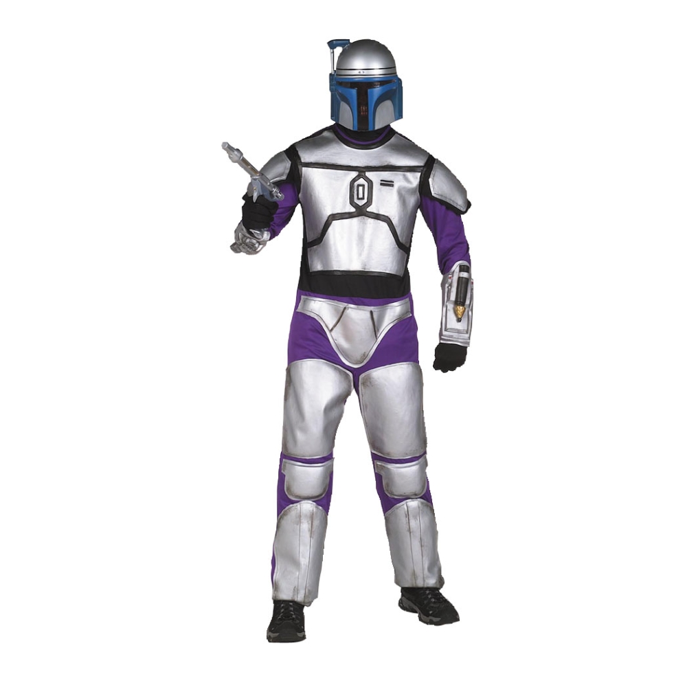 Polyester Fabric Jumpsuit With Attached Flexible Vinyl Armor. Includes Matching Gloves, 2 Pc Pvc Mask, And Belt. Fits Most Children Sizes 12 To 14. Guns Not Included.