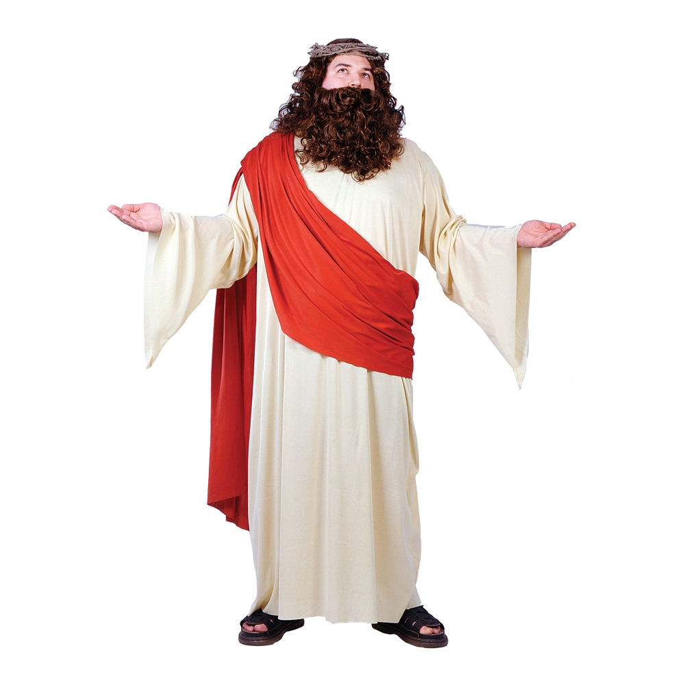 Long Cloth Robe With Drop Sleeves, Attached Sash, Wig, Beard And Crown Of Thorns. Plus Size 48-52.