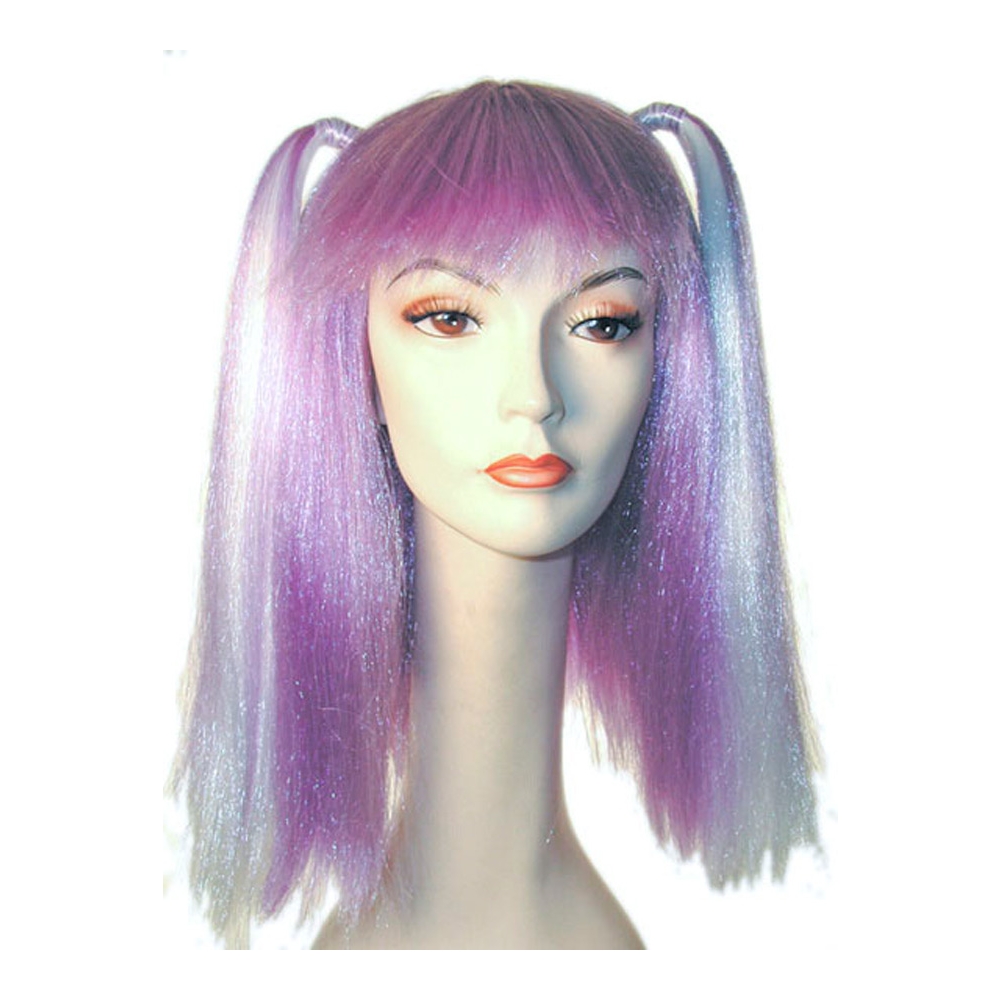 Unusual New Performer'S Style With Two Big Side Braids. Pink Purple