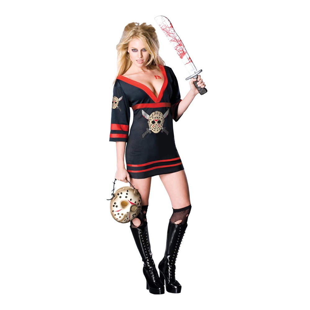 Dress With Jason Hockey Mask Front And Hockey Mask Handbag. Machete Not Included. Adult Size 6-8.