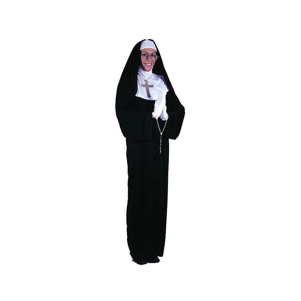 Nun Costume Includes A Lightweight Black Dress With Drape Sleeves, A 2 Piece Habit And A Pair Of Gloves. The Habit Consists Of A White Hood That Has A Velcro Closure In The Back And The Attached Piece On Hood Hangs To About Chest Length. It Also Includes A Headpiece With A White Band To Cover Forehead And A Black Drape That Covers Head And Hangs To Shoulder Length, Small Elastic Piece In Back For Size Variance. Plus Size 16-22. 100% Polyester.