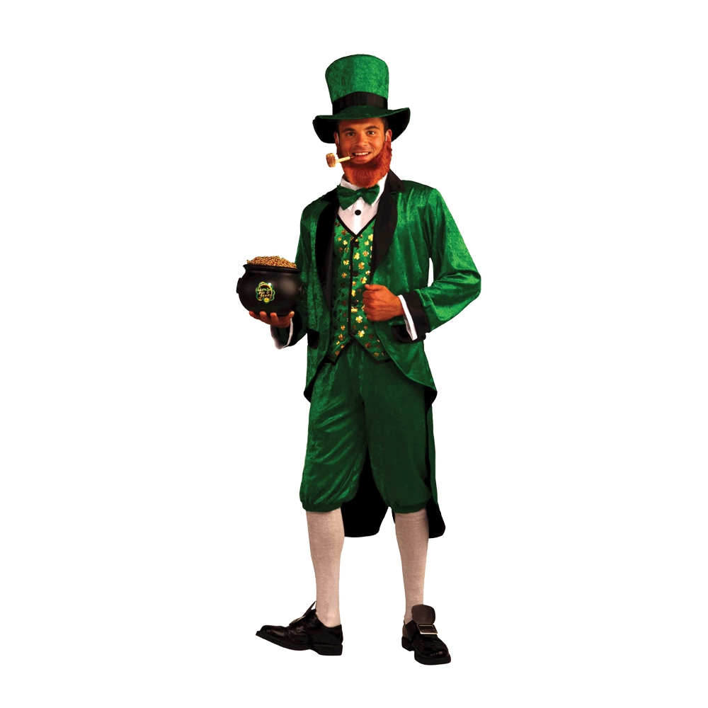 Faith And Begorrah! You'Ll Feel Fit As A Pot O' Gold In This Great Leprechaun Outfit! Includes Green Hat With Black Trim, Green Jacket With Black Trim And Attached Shirt Front, Bowtie, Vest And Pantaloons. Fits Adults Up To Chest Size 42".