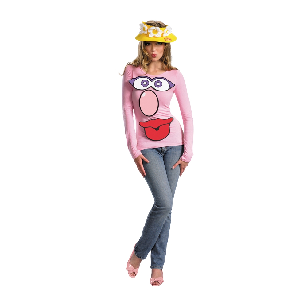 Mr. And Mrs. Potato Head Character Hats And Seven T-Shirt Stickers (2 Noses, 2 Sets Of Eyes, Lips, Teeth And A Mustache). T-Shirts And Pants Not Included. Add Your Own! Adult One Size Fits Most.