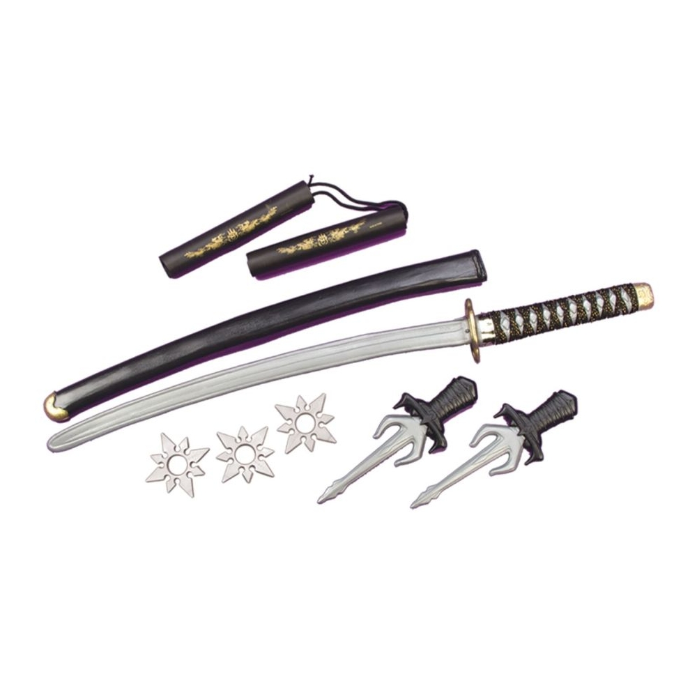 Plastic 5Pc Set Includes 1 31 Inch Katana With Sheath, 1 12 Inch Nunchuck, 2 Ninja Stars, And 1 9 Inch Sai Dagger.