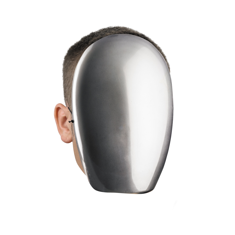 Plastic See Through Chrome Blank Face Mask With Elastic Band Attachment.