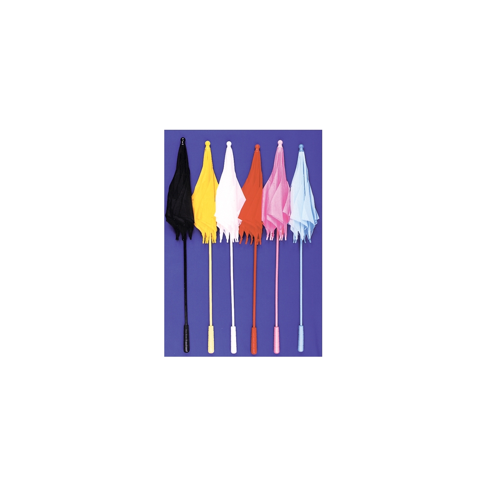 Parasol Is 28 Inches From Tip To End With A Wooden Handle, Metal Frame, Nylon Material, And Plastic Tip On Top End. Diamater Of Parasol Is 25".