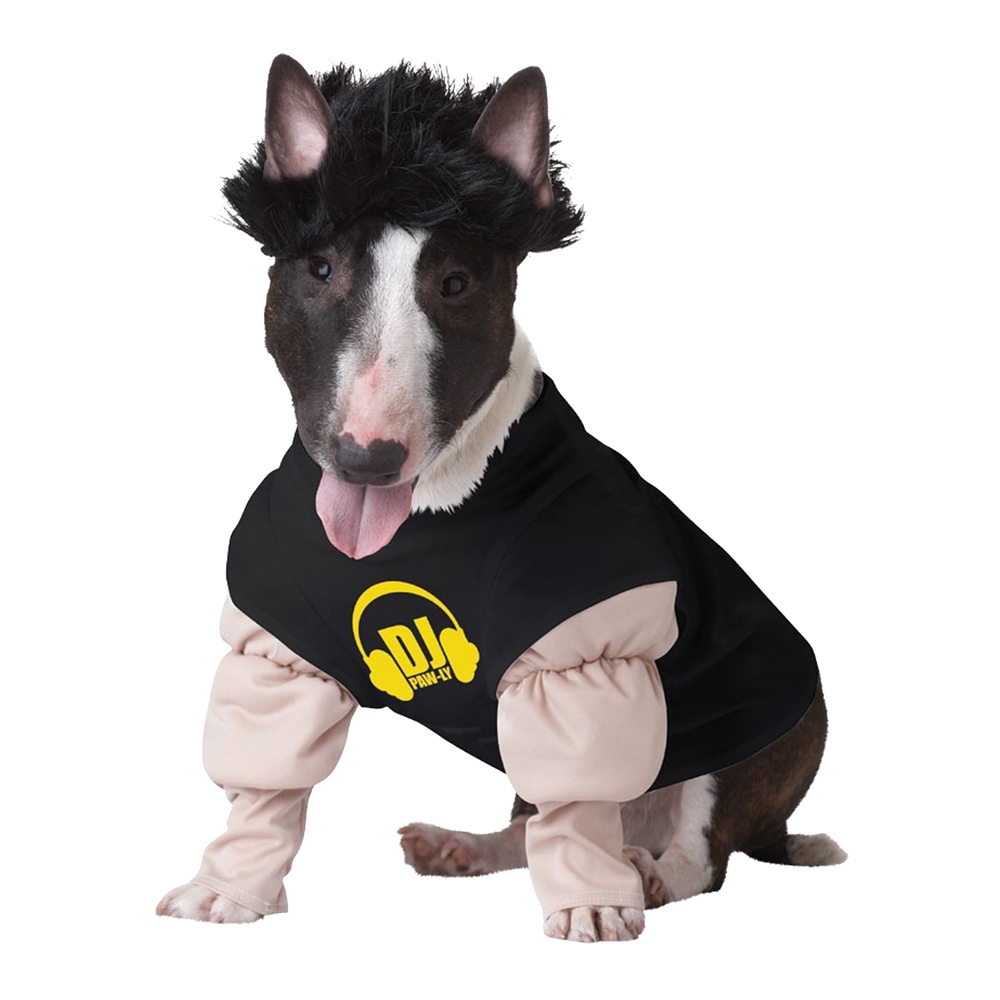 Get Your Pet To Bark Out A Fresh Beat! Muscle Chest Shirt And Wig. 100% Polyester. Fits Xsmall Size Pet 8" Long.