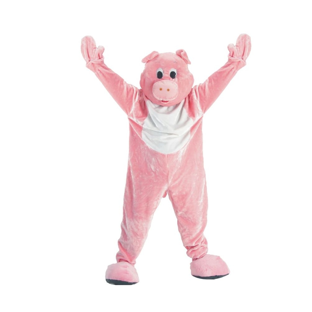 Jumpsuit With Attached Mitts, Pig Head With Ears And Jumbo Feet. One Size Fits Most. Height Up To 75 Inches, Waist Size Up To 60 Inches. Machine Wash Gentle. Flame Retardant. Polyester.