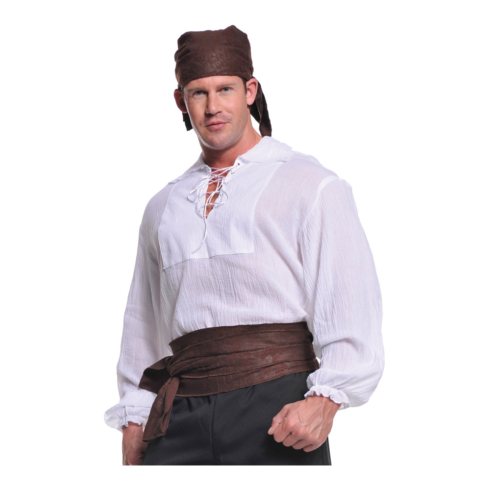 Perfect For The Plundering Pirate! Cream Long-Sleeved Shirt With A Lace-Up Front And Gathering At The Wrists. Adult Xxl Size Fits Sizes 48-50. 100% Polyester.
