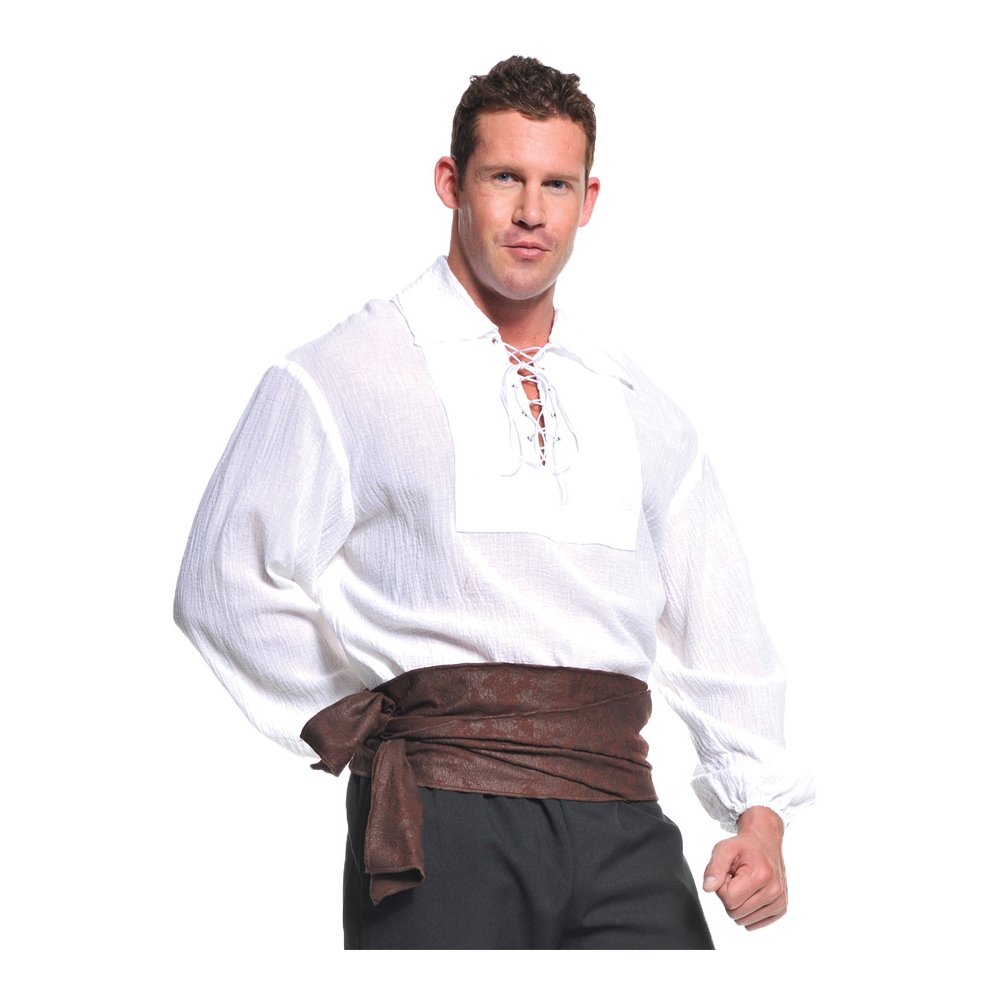 Perfect For The Plundering Pirate! White Long-Sleeved Shirt With A Lace-Up Front And Gathering At The Wrists. Adult Xl Size Fits Sizes 46-48. Long Sleeves Roughly 22Inches Long.