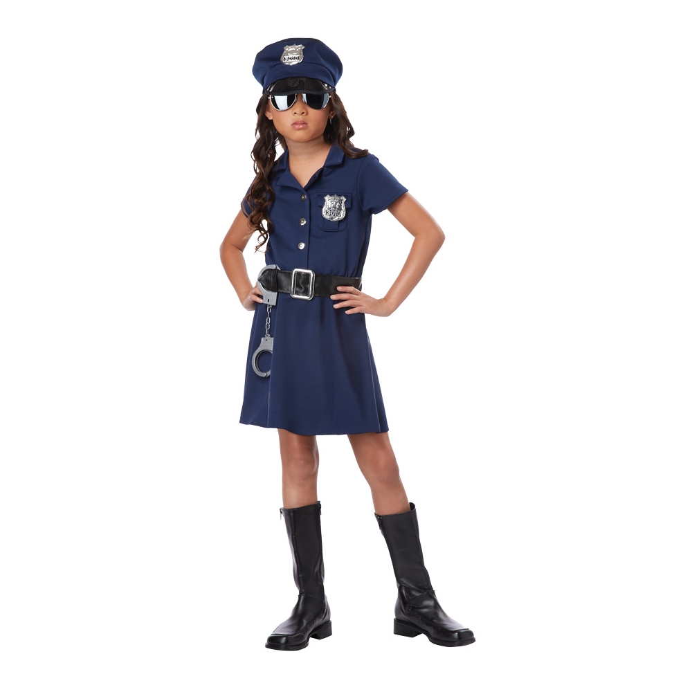 A Great Costume For A Child Who Wants To Take The Law Into Her Own Hands! Blue Dress, Belt, Hat, Handcuffs, And 2 Badges. Child Xlarge Size Fits Sizes 12-14.
